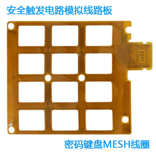 防探測防拆卸MESH安全柔性線路板,采用雙面覆銅板基材,正反面整板貼PI加強筋。確保線路安全。基本工藝流程開料,鉆孔,圖形轉移,貼膜壓合,測試,外形等工藝