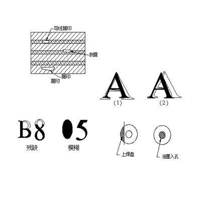第五部分:印刷部分 (油墨、字符、導電膠、銀漿)序號檢驗內容缺陷描述檢驗工具判定標準1偏位油墨覆蓋位置發生偏移,并超出公...